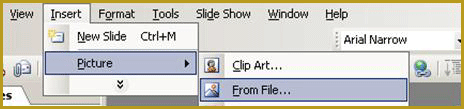 7. Scanned pictures (scan as tiff or jpeg files ONLY, RGB if possible) may be inserted by choosing "insert picture" from the "insert" menu. You may resize the imported picture by clicking/dragging the corner selection bars. Any other image manipulation should be done before importing.